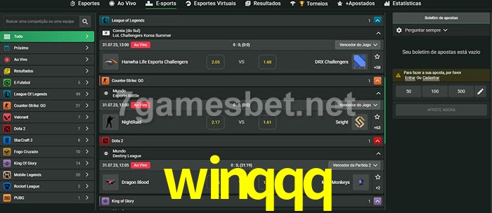 O winqqq oferece uma grande seleção de opções de apostas em e-sports com probabilidades competitivas